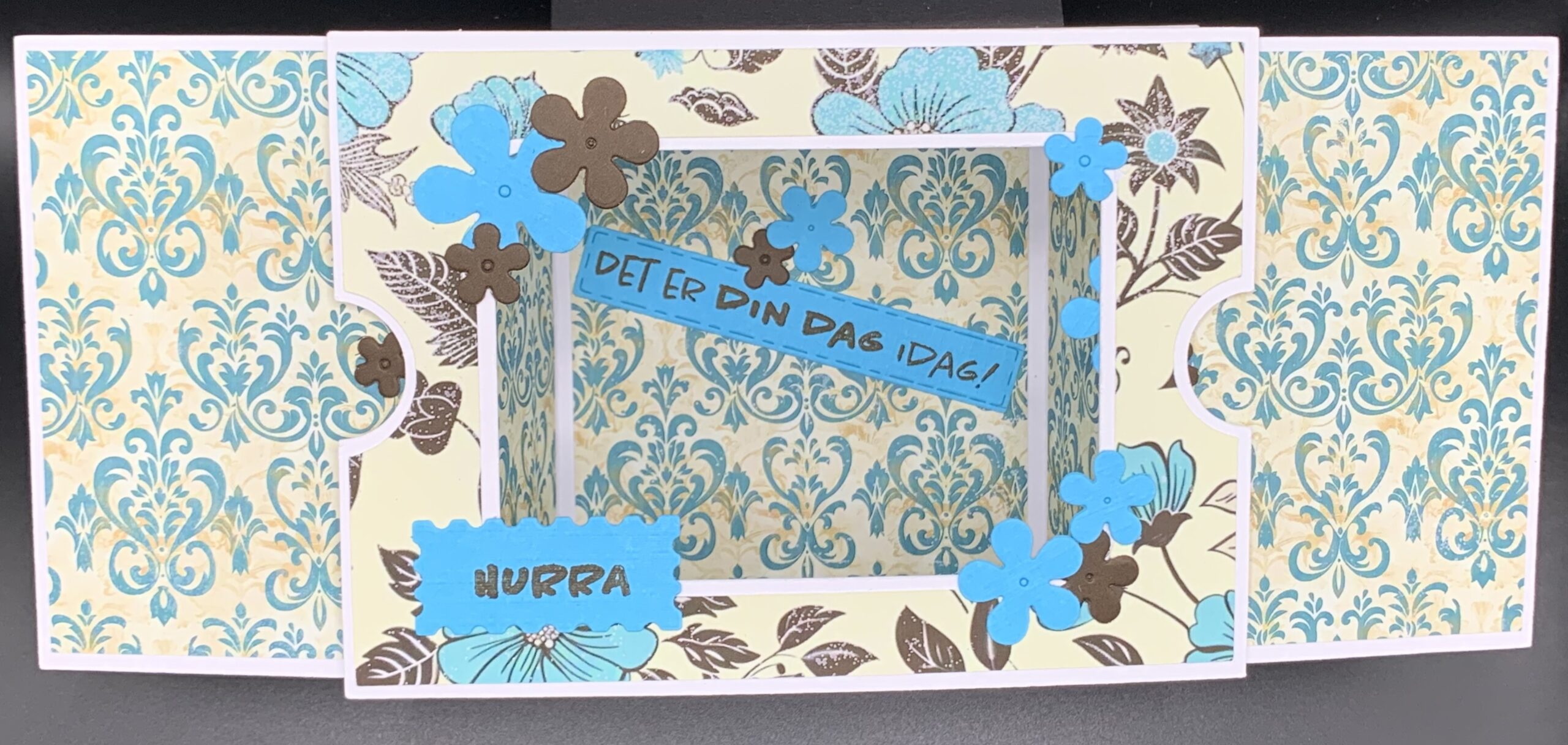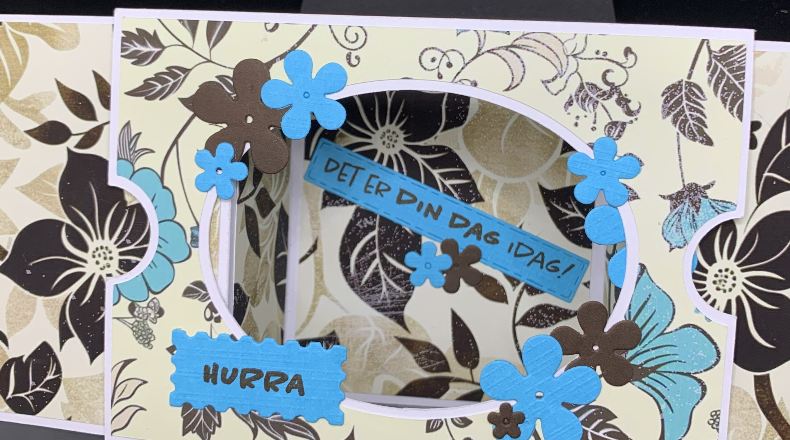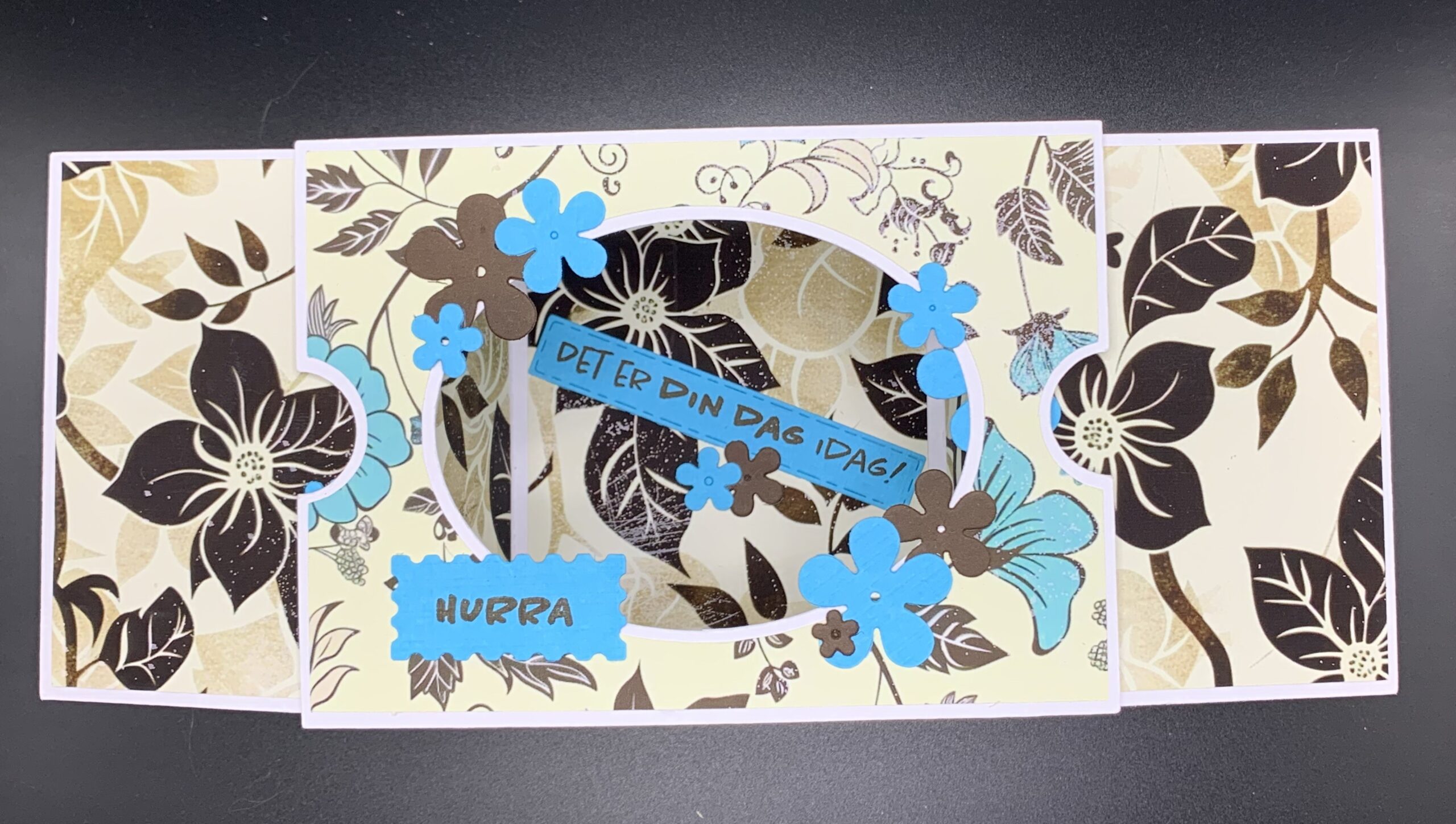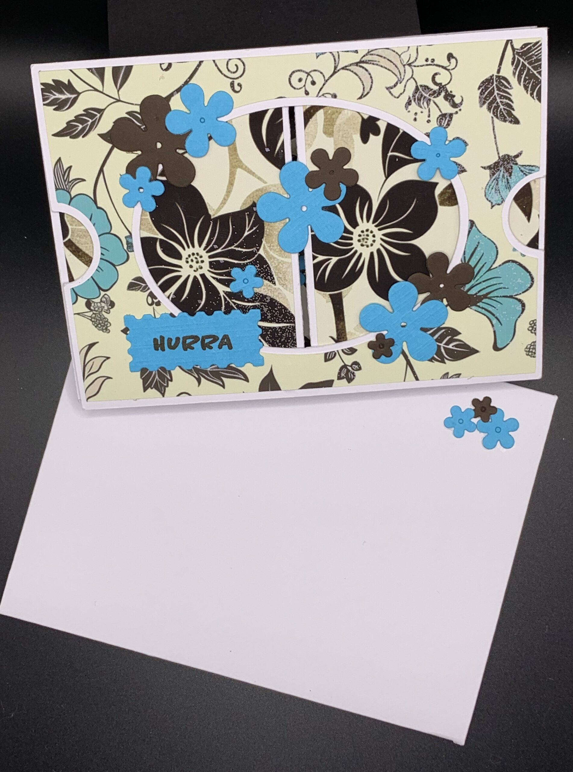 Træk-ud panorama-kort med Hurra som eneste tekst. Inkl. matchende kuvert.