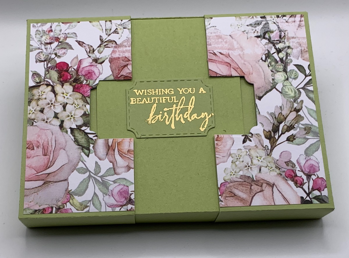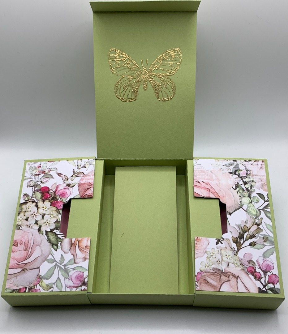 Kommer med matchende bånd (se første billede) og lille forhøjning, hvis man f.eks vil lægge et gavekort i.