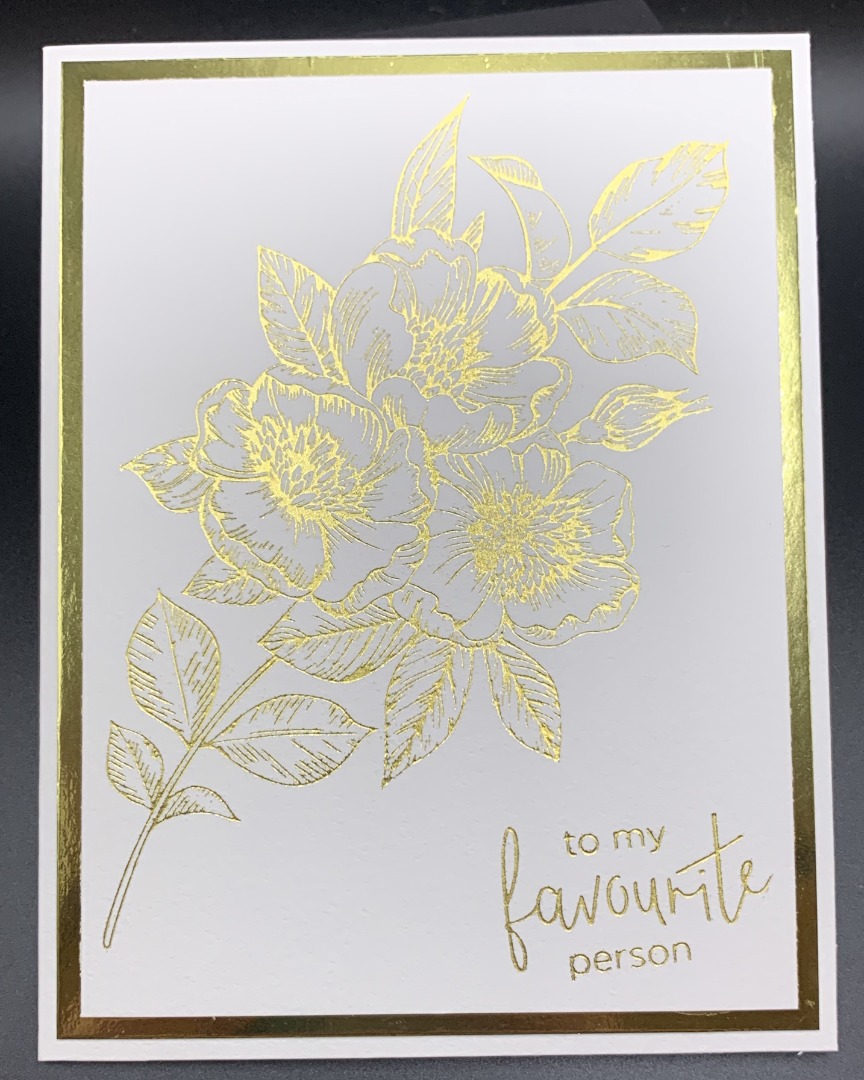 Kort med folietryk af blomster. Inklusiv kuvert.