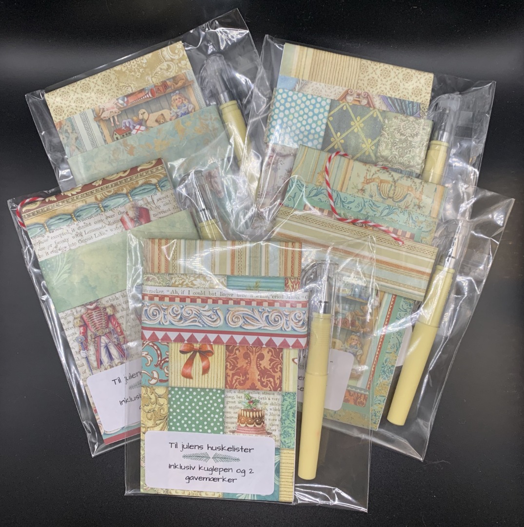 Lille matchende kuglepen og 2 gavemærker i samme stil medfølger.